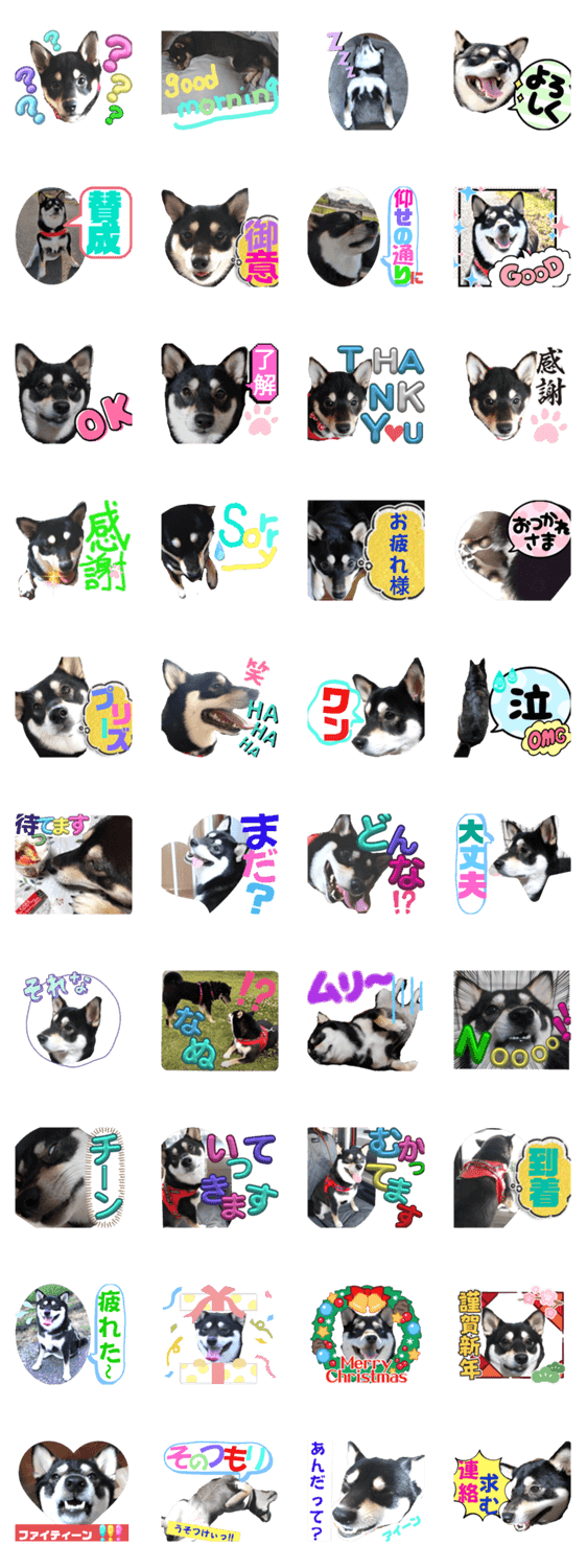 よく使う日常スタンプ豆柴MIYABIN♥黒 -LINEスタンプマニア