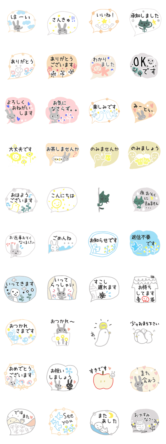 大人カワイイ、落ち着いた色とポップな色の組み合わせの敬語スタンプです。