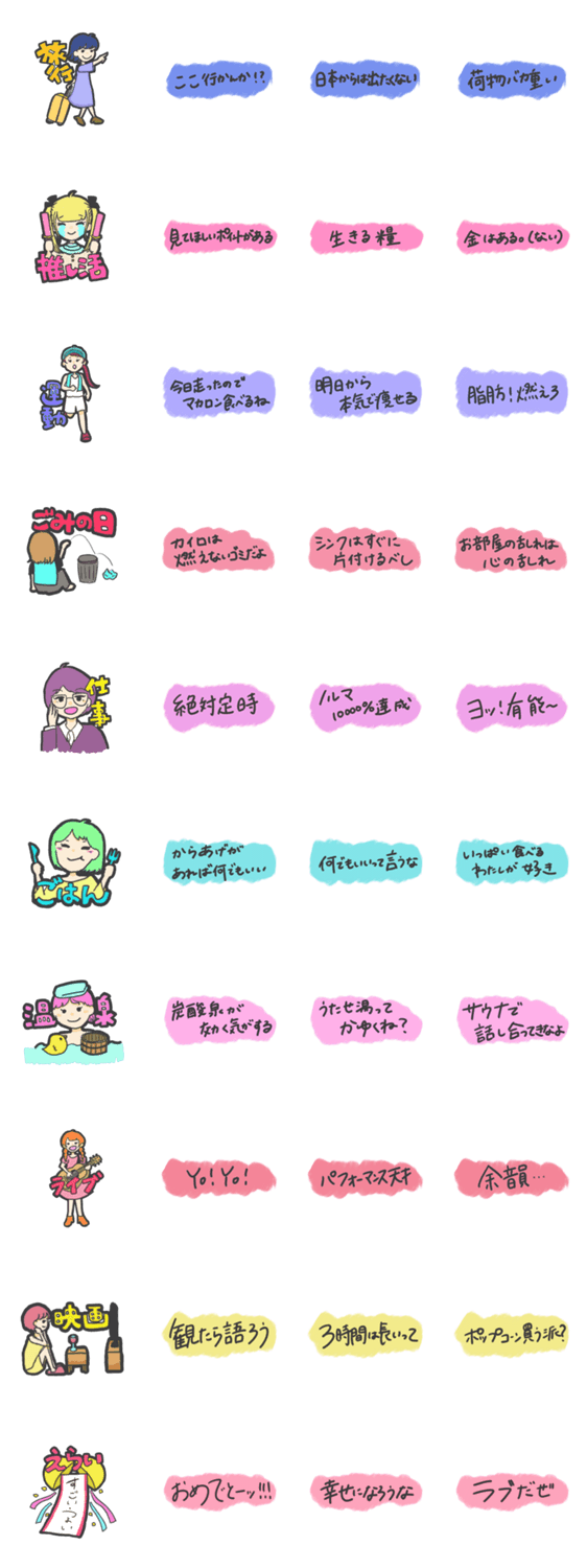 毎日毎日、私たちはやりたいことい~~っぱい! 予定を立てるときなどに、重宝できるものもあればできないものもあるスタンプたちです。