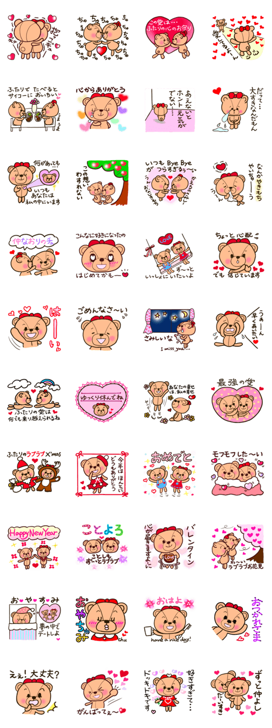 彼氏とのラブラブをいっぱい表現できるスタンプです。シーズンスタンプもあります。