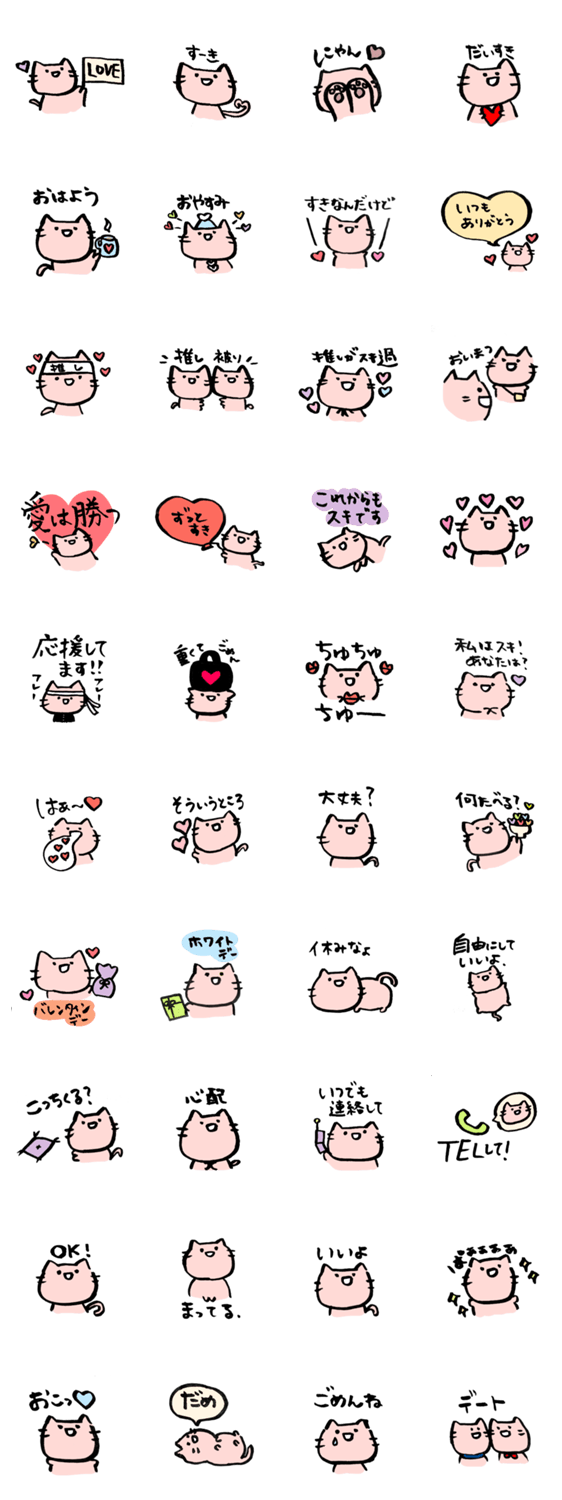 ゆる笑顔のねこスタンプでなかなか恥ずかしくて言えない ラブコールを送ってみてください♡♡♡