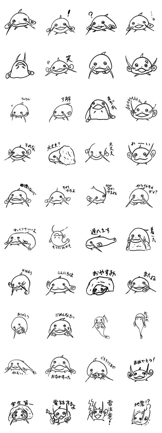 つねに安全第一、心配性なナマズさんの、シンプルなラインスタンプです。普段使いしやすい言葉を集めました。