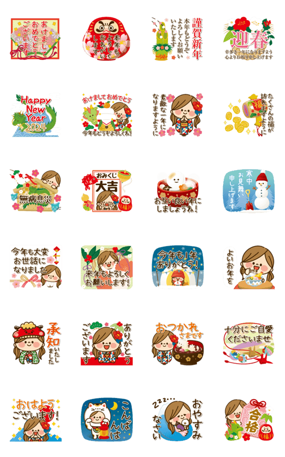 年末年始にぴったりな和風かわいいお正月・年賀の動く冬スタンプです!年末・新年の挨拶にぜひお使いください!2024年・辰年・龍・和柄(あけおめスタンプ2024対象)