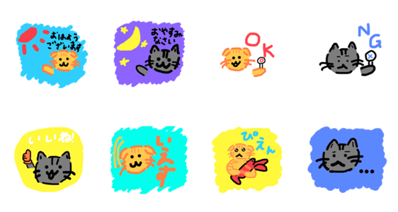僕んちの猫の「しらす」と「きなこ」をモデルに作って見ました。良ければ買ってみてください。̳^. ̫ .^ ̳ (LINEスタンプメーカーでつくりました。)