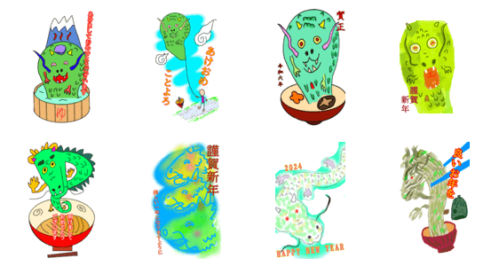 浮いてる龍さんです。(あけおめスタンプ2024対象)