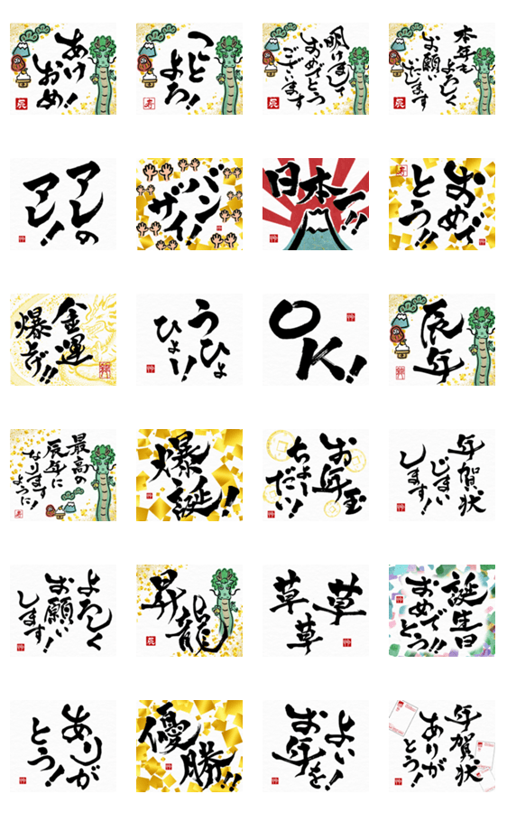 動く!飛び出す!面白い書道家2024辰あけおめ -LINEスタンプマニア