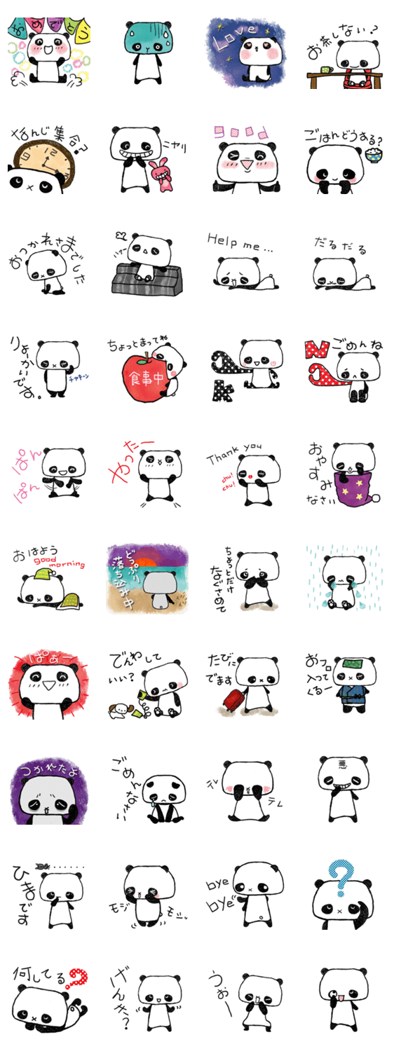 ぶさいくで可愛いパンダのスタンプです。