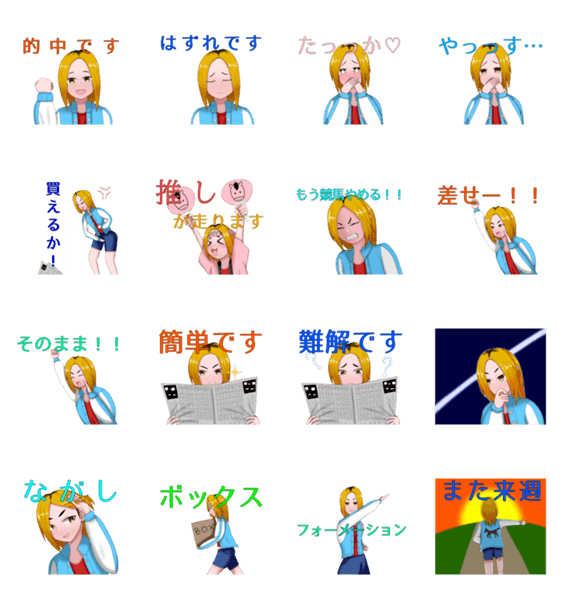 競馬が好きな女子、ミユキちゃんのスタンプです! レース開催中にご友人とのやり取りにピッタリ!