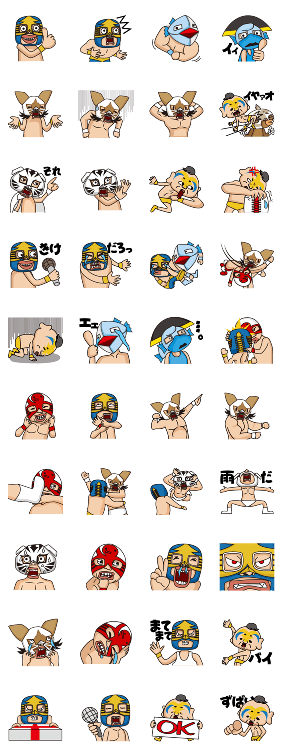 北海道プロレスの第二弾!イカやタコのレスラー以外にもナポレオンや謎のマスクマンが登場!!素顔で戦うレスラーは誰だ!北海道プロレスで戦う人気レスラーのスタンプ