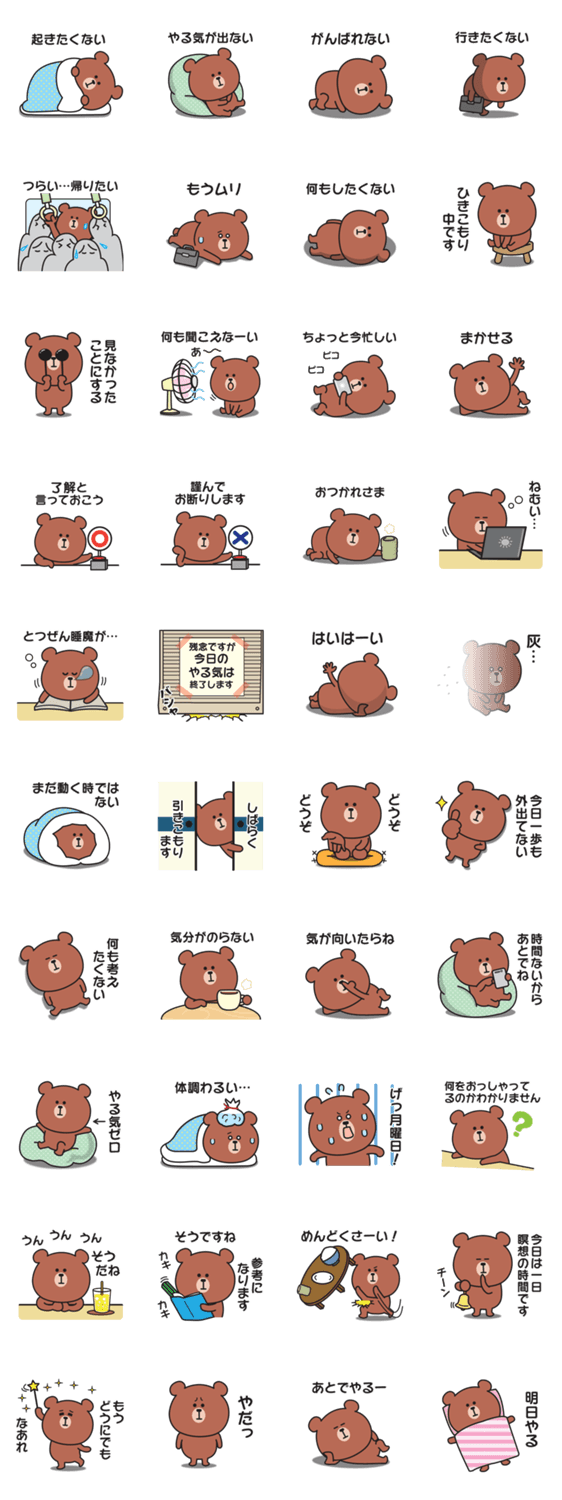 さっぱりやる気が出ないくまさんのスタンプ -LINEスタンプマニア