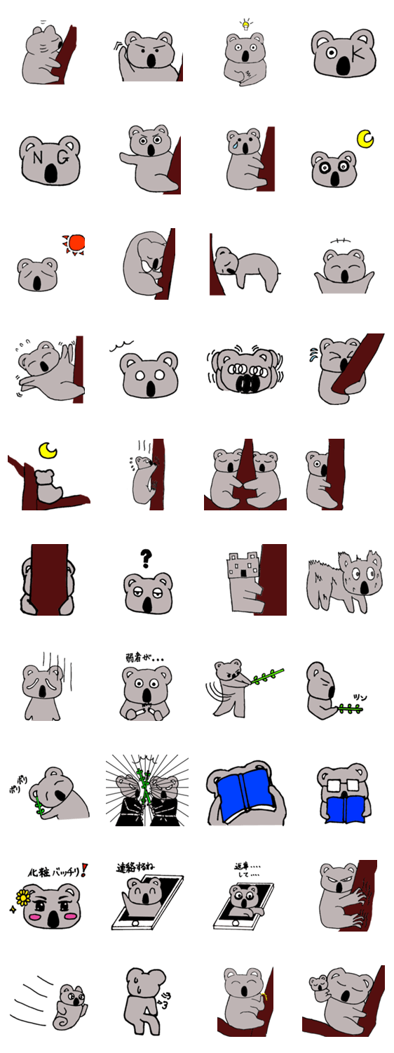 コアラの日常をスタンプにしてみました。コアラも意外と人間に近いんだなぁ...ぜひ使ってみてください。