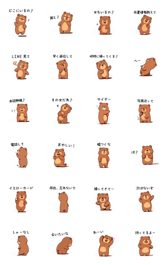 彼氏や旦那さんのことが好きすぎる嫉妬深いクマのスタンプです!#彼氏 #恋人 #旦那 #夫婦 #嫁