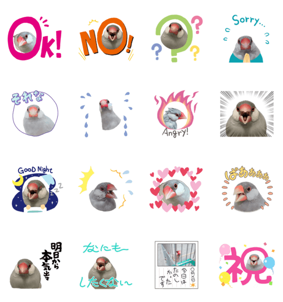 シルバー文鳥のだいふくの表情豊かなスタンプ第2弾!