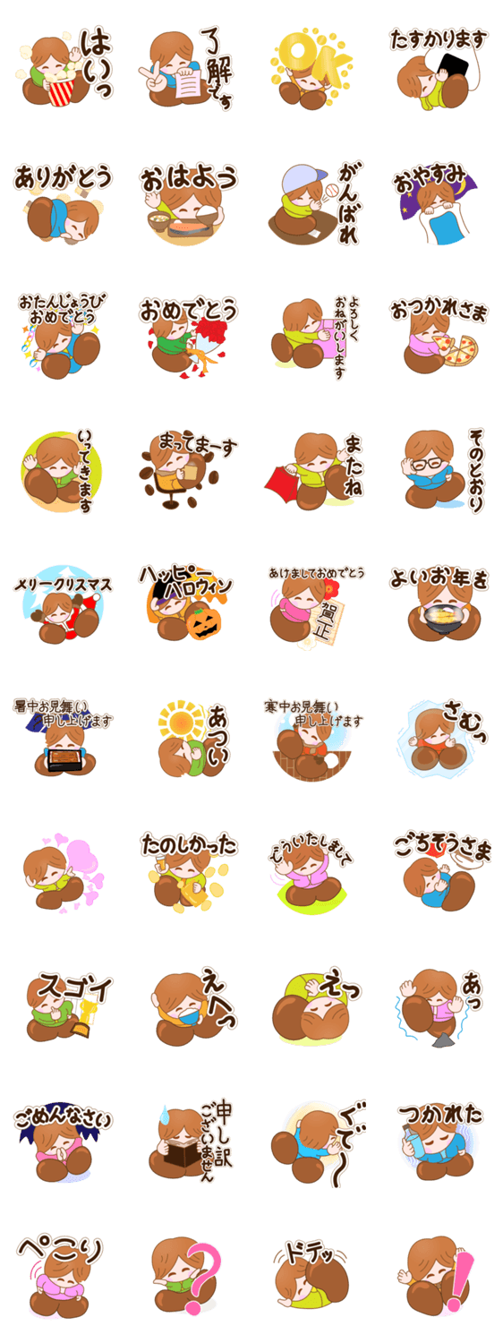 ☆笑顔たっぷり☆でぽっちゃりなキャラクターのスタンプです。 一年中使いやすいです。