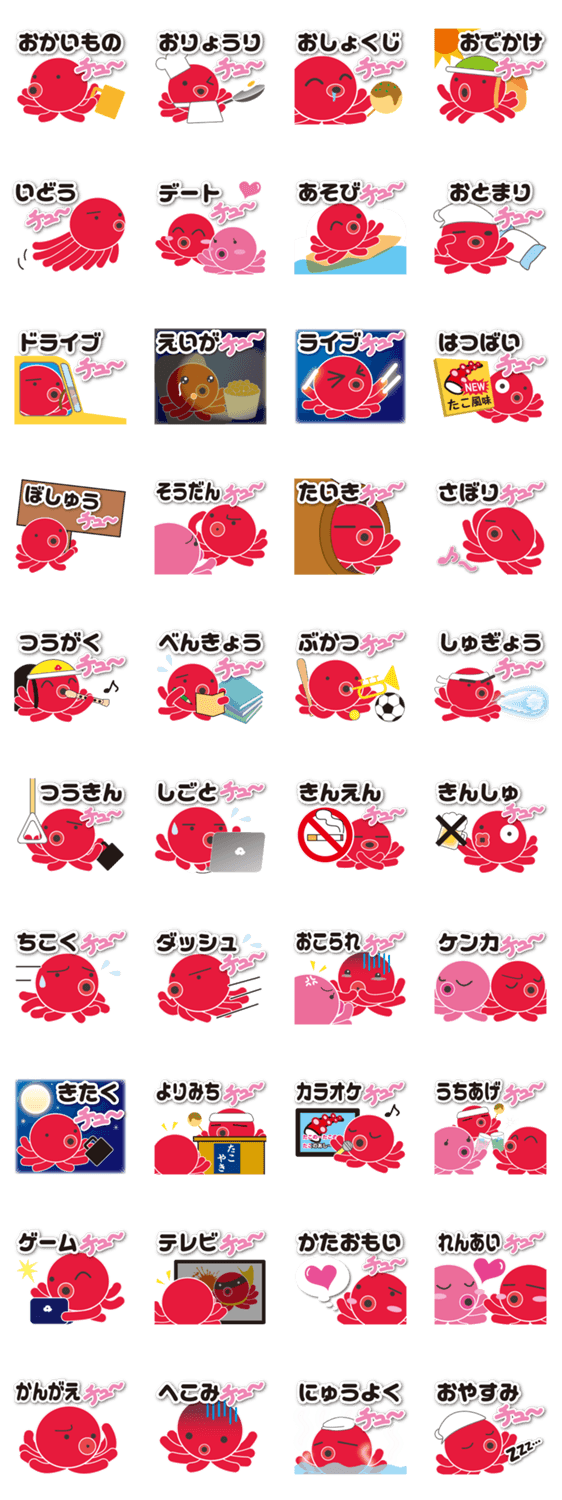 今なにしてる?あなたの今を可愛いタコのスタンプで伝えよう!