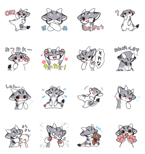 まるくてやわらかい肉球ドラゴン「おかゆ」のスタンプです!