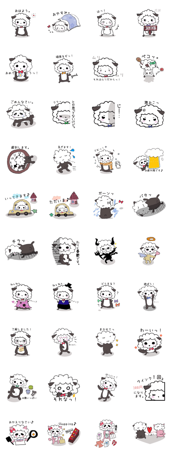 友達、家族、恋人、日常によく使える。ゆるく、かわいい、癒しの羊のモコ吉くん。ときどき、モコ実ちゃんのほのぼのライフ。
