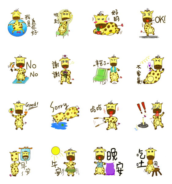This giraffe has a mane atop its head, with a short neck. It adores mischief and munching, yet harbors a dashing, innocent, and upbeat spirit within.