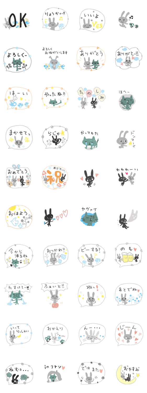 大人カワイイスタンプ第2弾。ウサギとネコの敬語とシンプルな言葉のスタンプです。