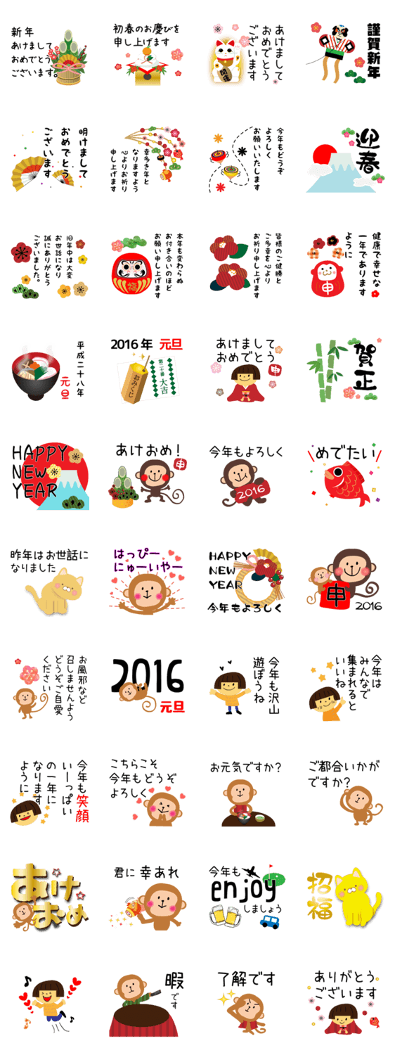 大人のお正月(年賀・申年)セット -LINEスタンプマニア
