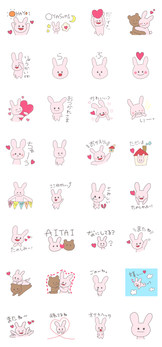 恋人とのLINEに使いやすい、ゆるいうさぎのスタンプです。