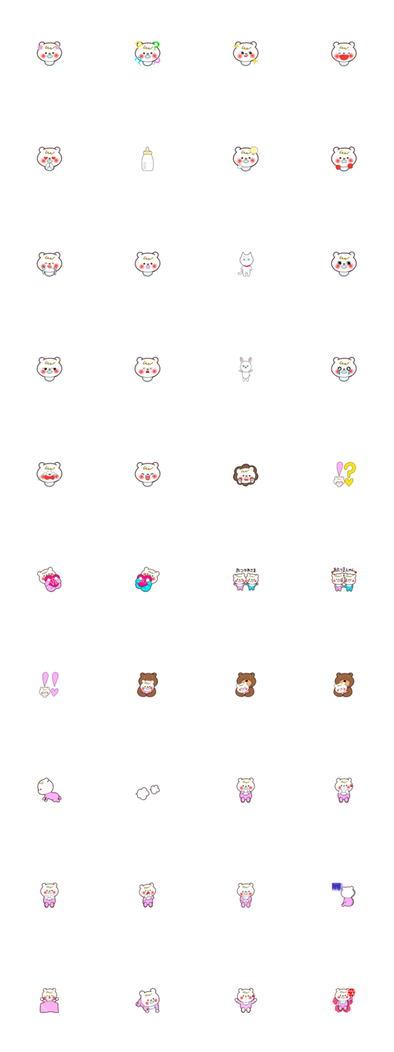 くまのあかちゃんのミニスタンプで気持ちを伝えよう!今回はピンクくまちゃんが多めです。赤ちゃん/Baby/ベビくま/甘えん坊/哺乳瓶/ぬいぐるみ/双子/2人は仲良し