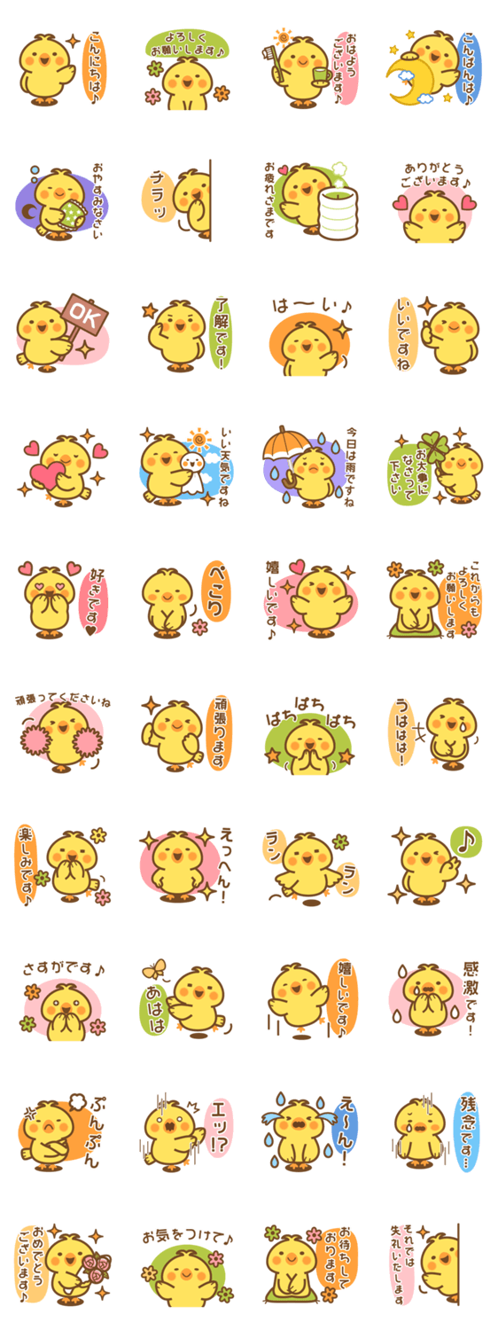 ヒヨコさんの日常で使用出来るシンプルな敬語スタンプです。