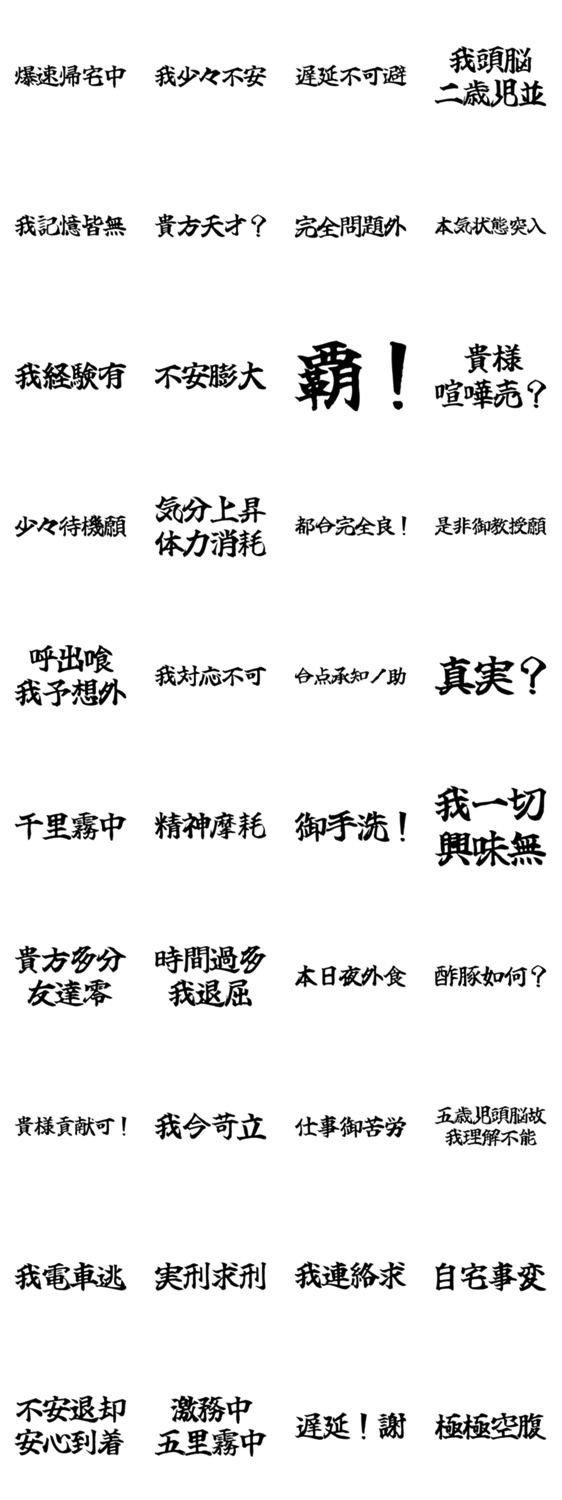日常的に使える「日本語」スタンプです。背景が濃くても見やすいように白のフチが付いてます。