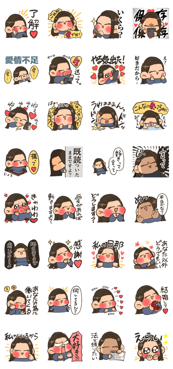愛に溢れる黒髪女の子 -LINEスタンプマニア