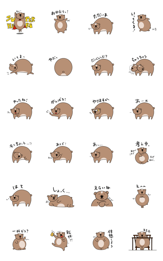 まるまる、まるいくまのスタンプです。
