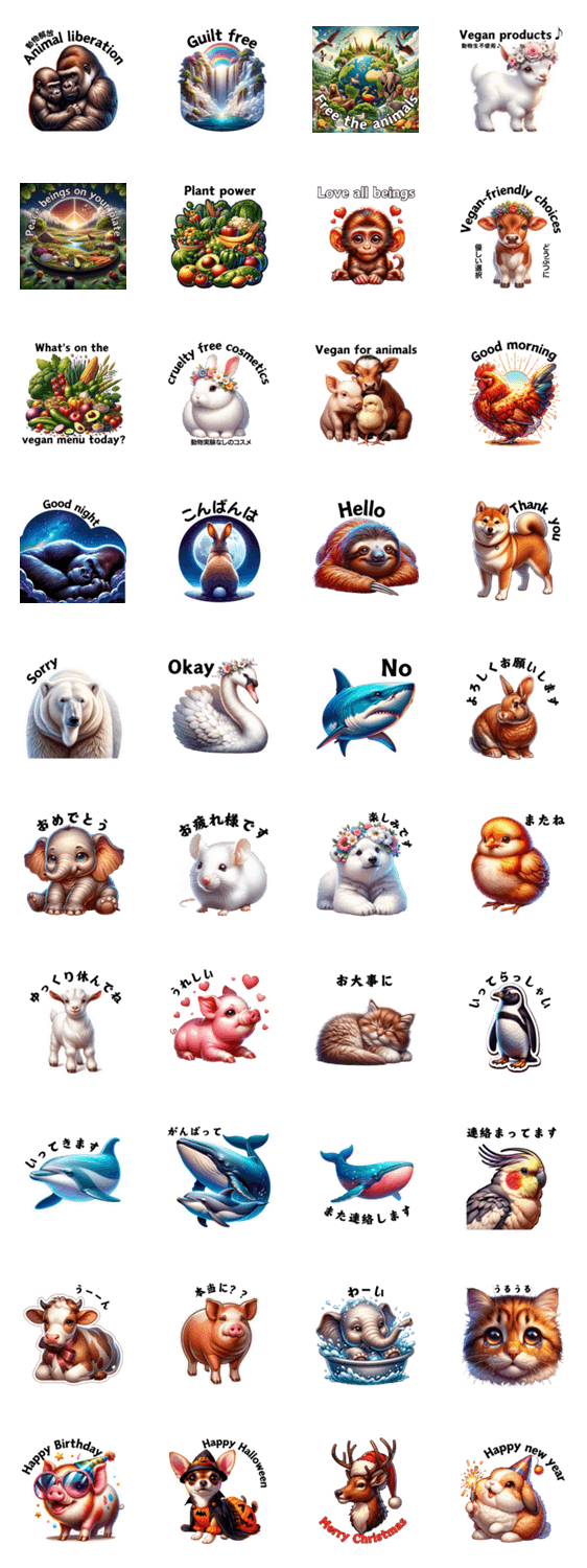 ヴィーガンの心と動物たちの優しさをあなたのメッセージに!毎日のやりとりにちょっとした思いやりと楽しさをプラス。(vegan/動物好き/ベジタリアン/地球環境/日常会話)