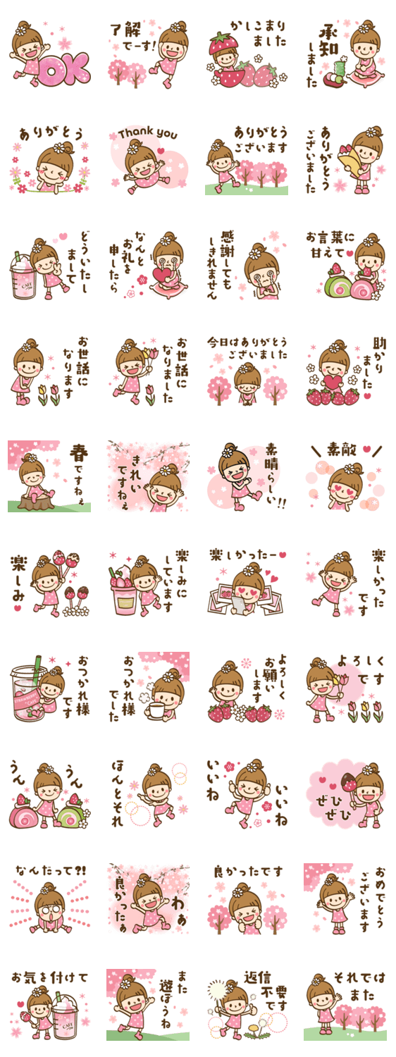 おだんごさんシリーズ。毎日使える・使いやすいスタンプ!可愛い・春・spring・ガール・おだんご・女の子・かわいい・3月・4月・5月・桜・苺