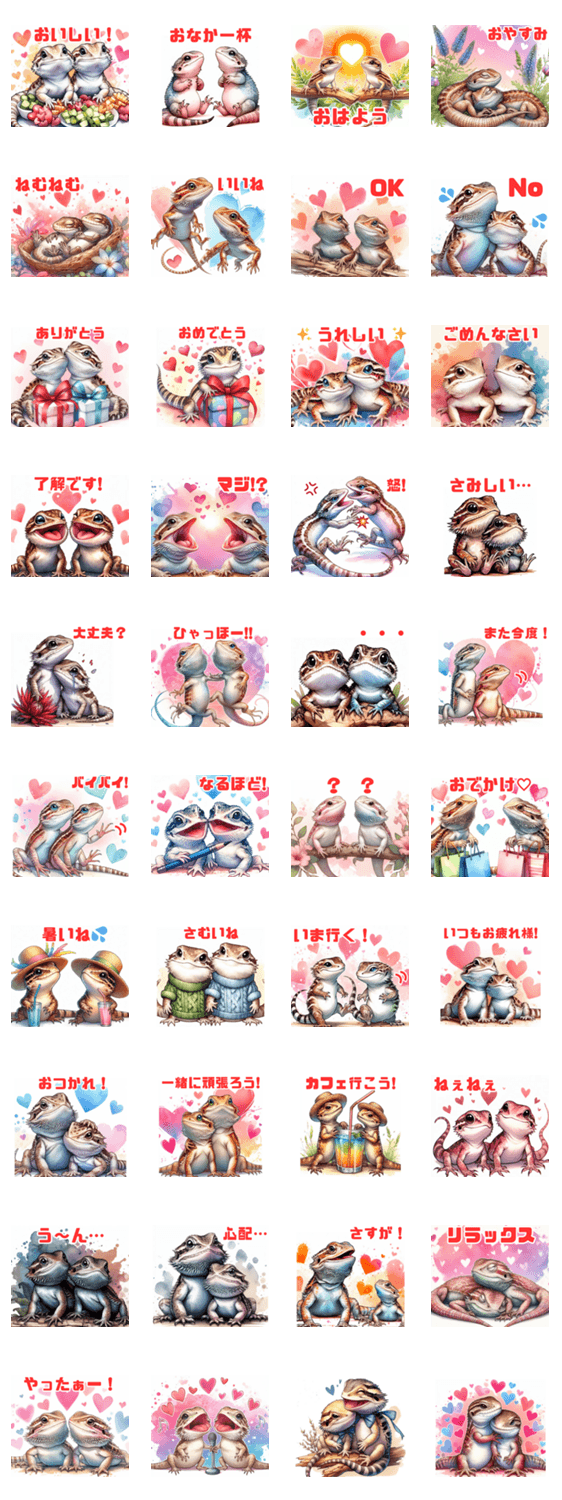 水彩画風ラブラブなフトヒゲアゴトカゲ -LINEスタンプマニア