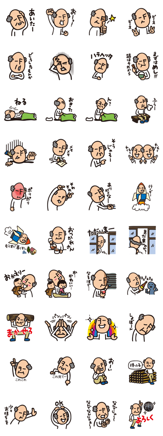 頼りになるおじいちゃん“けんじぃ”のスタンプ、第二弾。より使えるじーちゃんになって再登場!