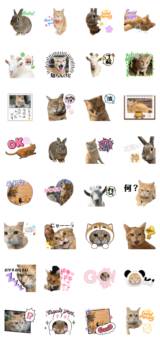 うさぎ、ねこ、やぎの動物さんの愛らしいスタンプです。