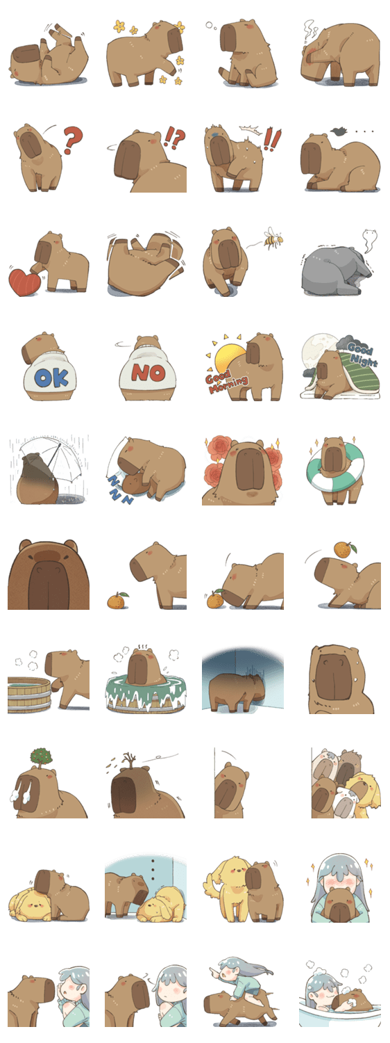 シロマロのペットたち第一弾! みんな大好きなカピバラ白子の専用スタンプー ペットたち普段どんな生活しているのでしょうか? このスタンプが教えてあげる!