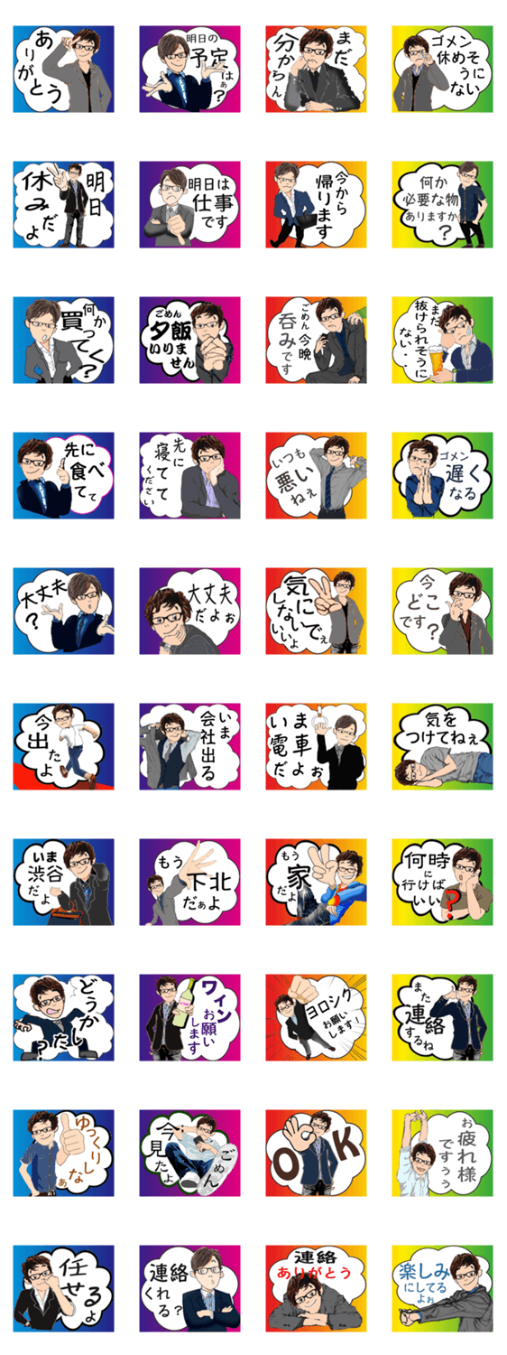 眼鏡男がモチーフの結構使えるスタンプです。これさえあれば大丈夫さぁ!