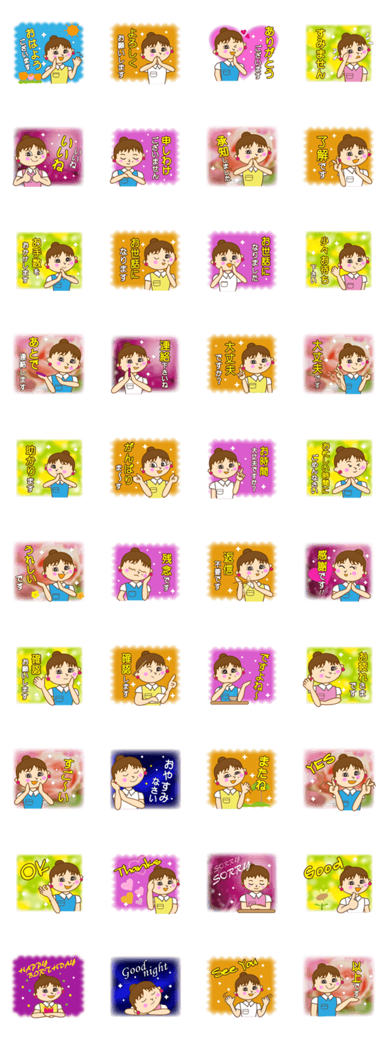 お友達と連絡、お礼、挨拶など、使いやすいスタンプです。よく使う言葉の日常会話です。