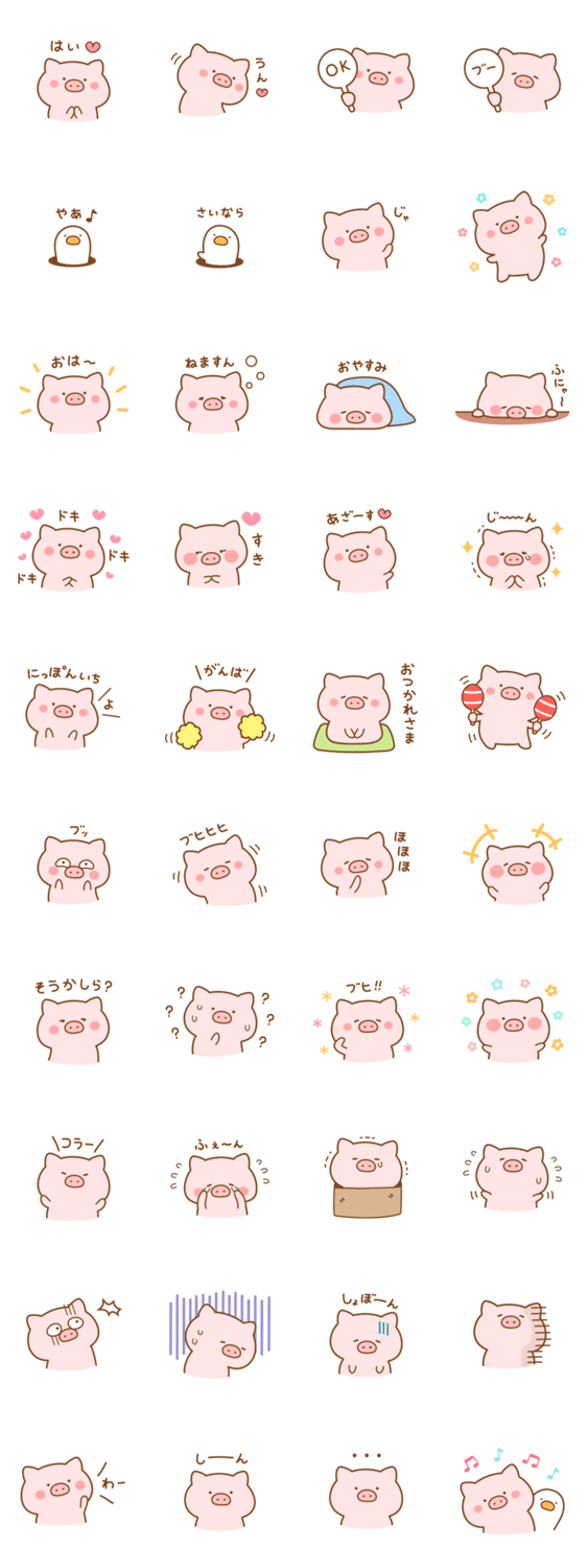 つぶらな瞳で語りかけるこぶた「ぶたたん」のスタンプ第三弾です。