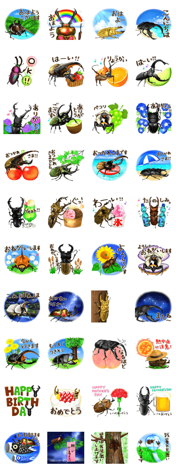 リアルでかわいいクワカブの春から夏の挨拶や気持ち、日常の使いやすいスタンプです。