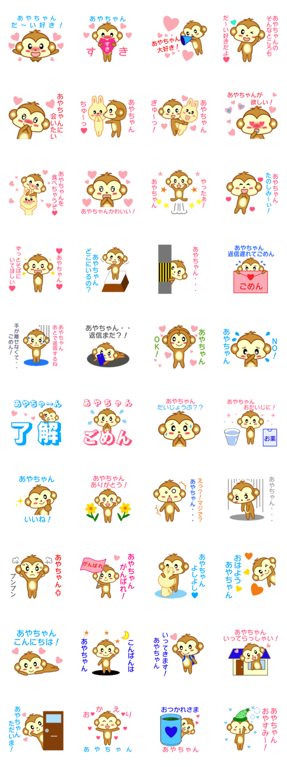 「あやちゃん」に送信するため用スタンプ!「あやちゃん」に送信する際に使うことで、あやちゃんに喜ばれ、より自分の想いをより伝えられること間違いなし!