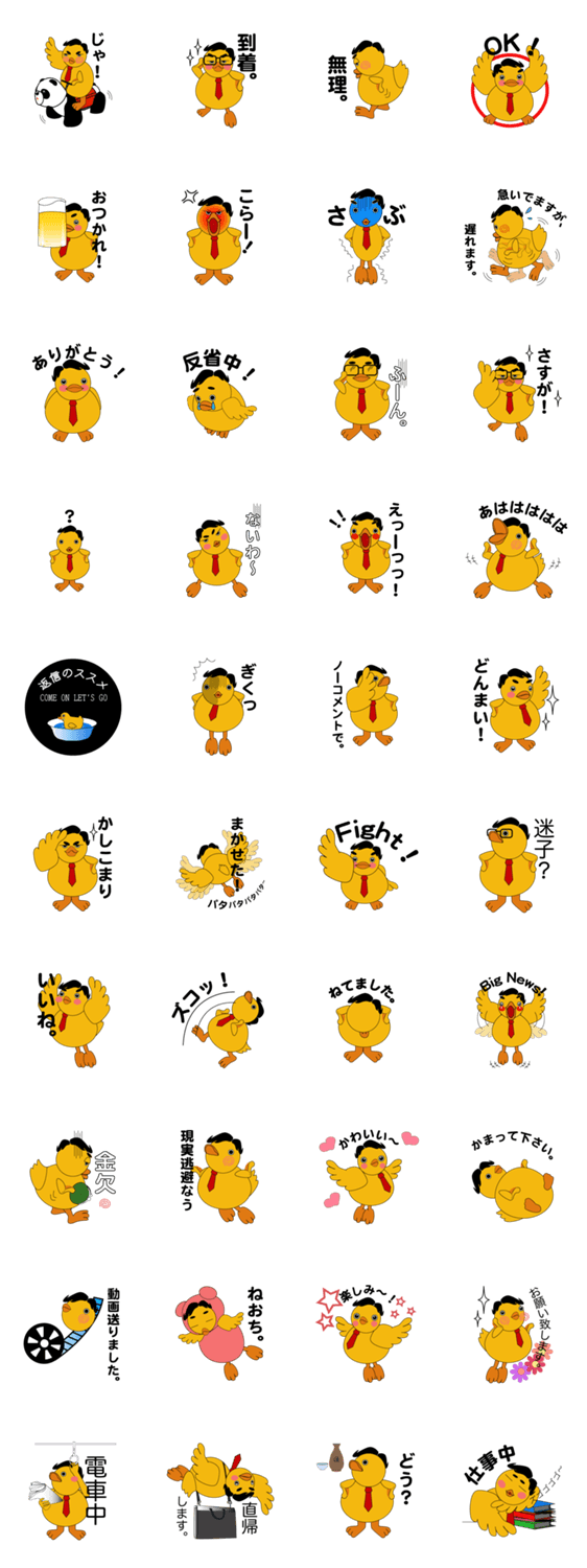 トレードマークの七三で、バードリーマンことアヒル係長は今日も無骨にお仕事中。ふてぶてしくも愛くるしい「きいろいアイツ」をよろしく。