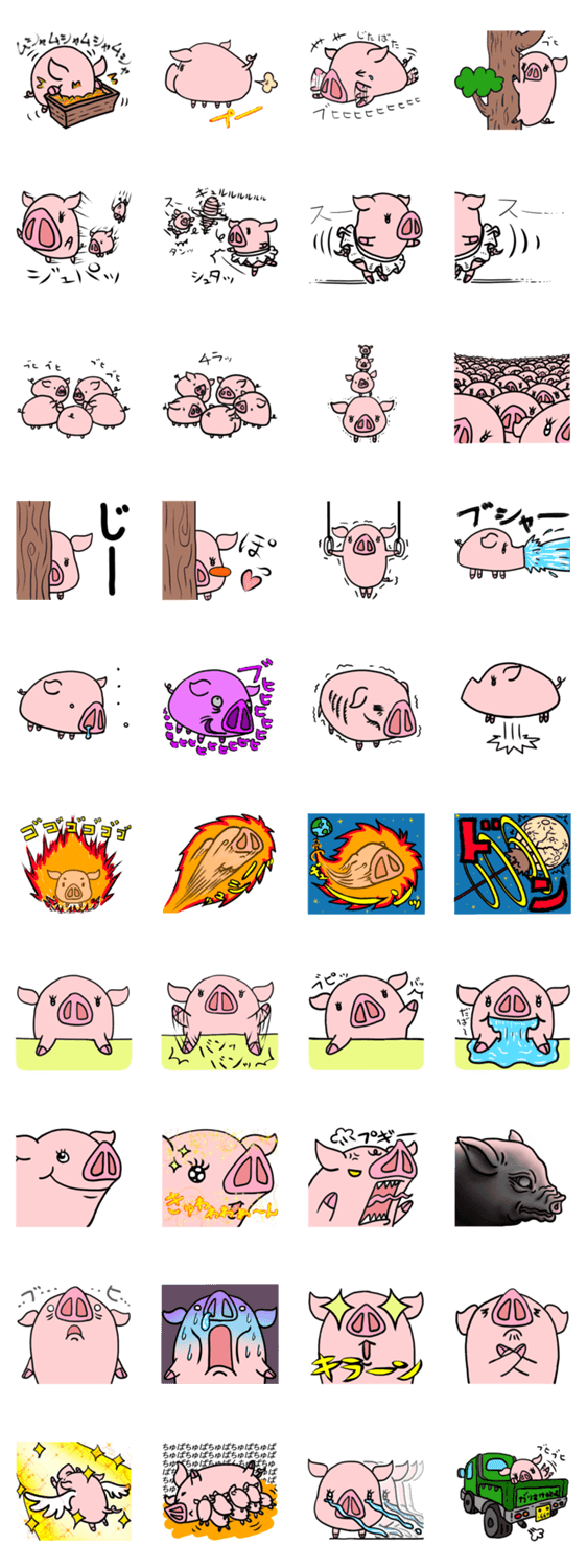 スタンプ第5弾。子ブタの舞太郎です。少しだけですが踊れたり、飛べたりします。