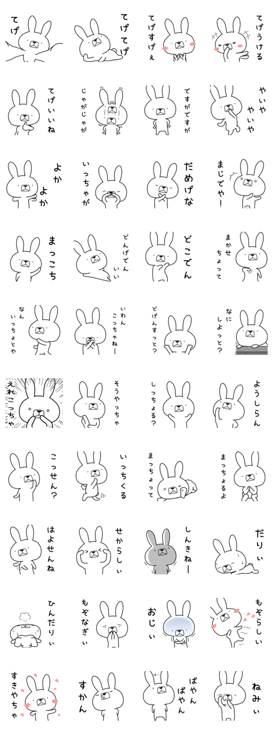 いろんな方言をつかううさぎのスタンプ宮崎弁編(宮崎弁ですが、大分・鹿児島・熊本・九州地方の方や、そうでない方も使えるかも。また違う県verに似た方言が見つかるかも)