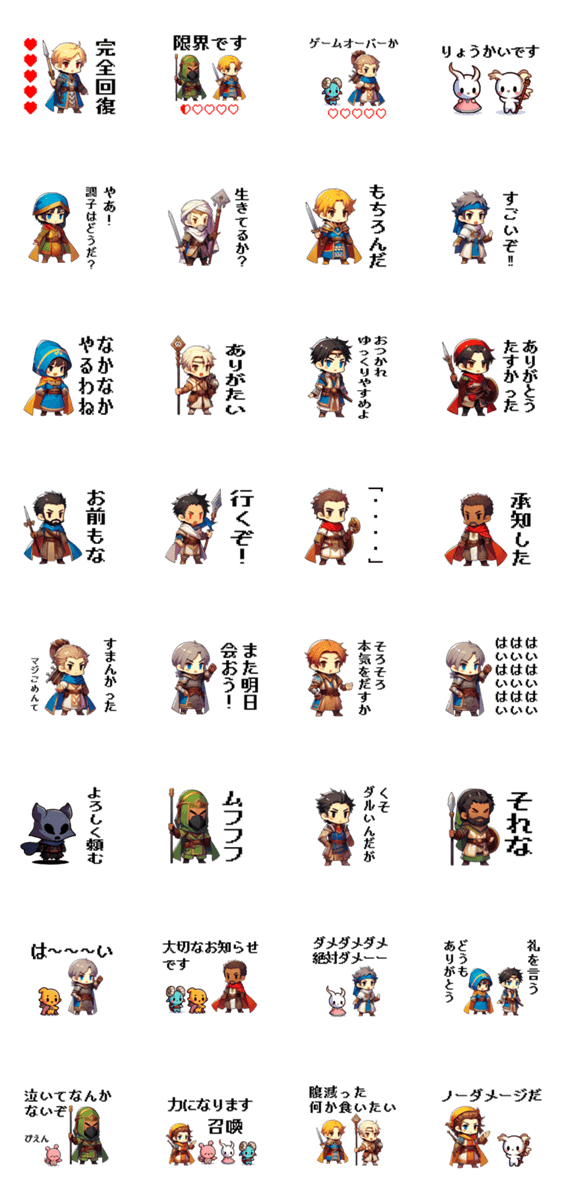 RPGゲームに出てくるっぽいキャラクターたちのスタンプです。