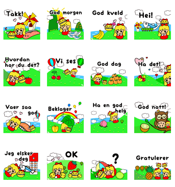 リリーとハートマカロンちゃんのかんたんノルウェー語スタンプ