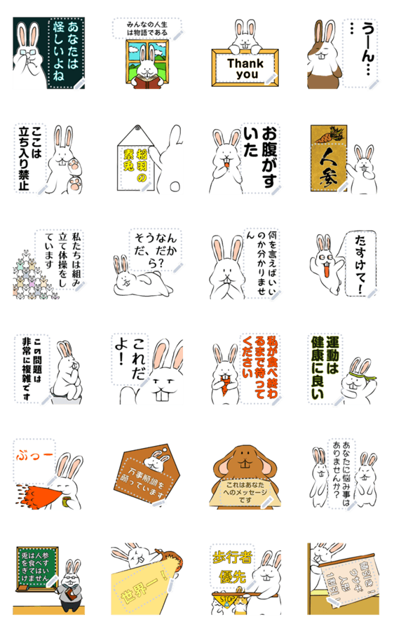 | スタンプ説明 | おさき兎(Osaki-Rabbit)制作の兎霊幽兎スタンプ第4弾バージョンとメッセージスタンプ第1弾です。 現在この商品は一部のスマートフォン版LINE 10.3.0以上のトークルームでのみ使用できます。動作環境の最新情報はヘルプをご確認ください。 |