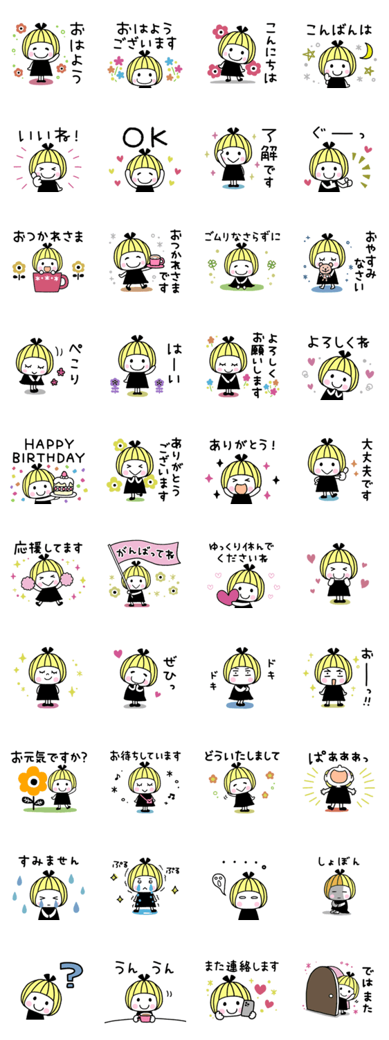 シンプルな日常に使いやすいスタンプです。 表情豊かな女の子が気持ちを伝えます。