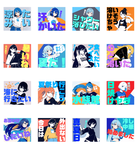スタイリッシュな女の子達による夏に使えるスタンプです。