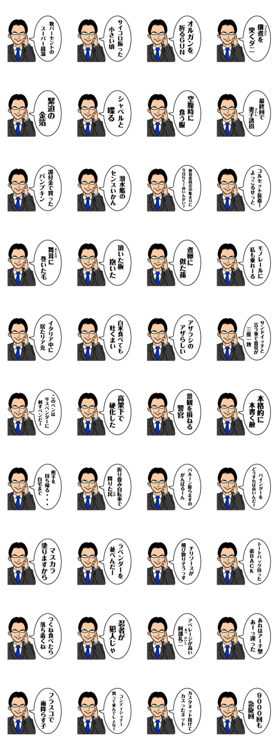 エリート風な奴が只々ダジャレを言ってるだけのスタンプ。